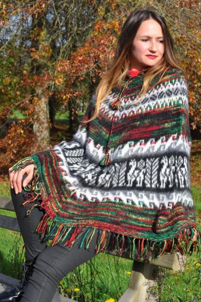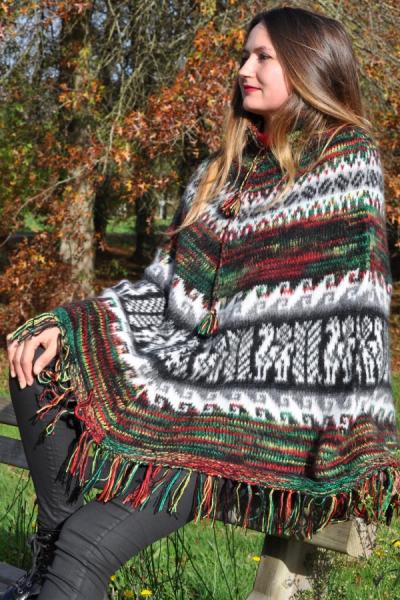 Poncho en laine d’alpaga – Fait main au Pérou