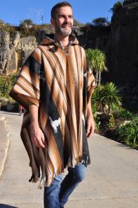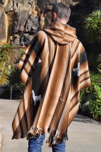 Ref.: PNCH-KPUCH-MRRON-ALPKPoncho péruvien homme avec sa capuche tissé en laine d'alpaga