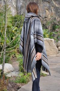 Authentique poncho péruvien grande taille gris en laine d'alpaga.