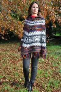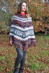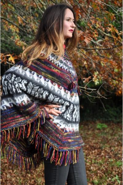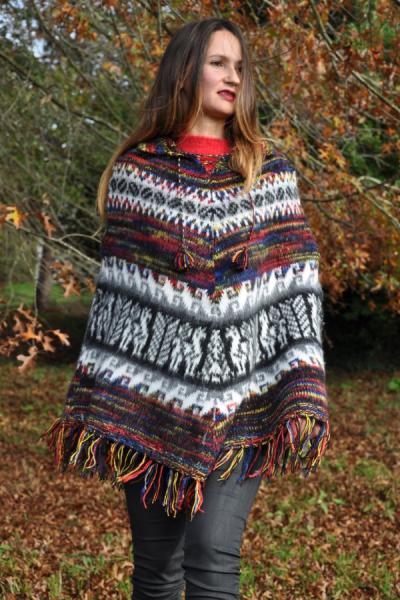 Poncho femme multicolore bleu laine alpaga