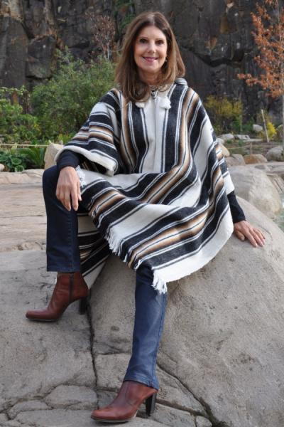 Découvrez ce superbe poncho en laine d’alpaga, tissé main sur un métier traditionnel au cœur de la cordillère des Andes.