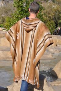 Poncho péruvien homme avec sa capuche tissé en laine d'alpaga