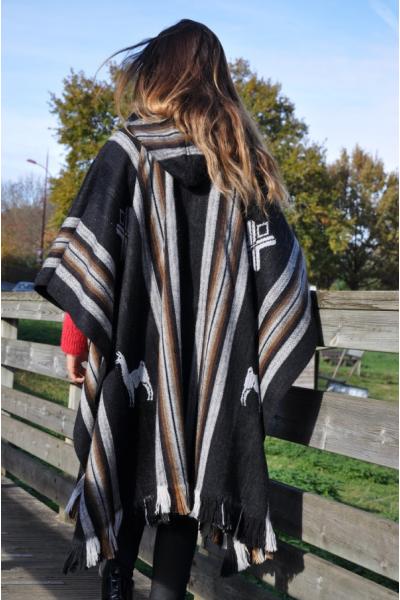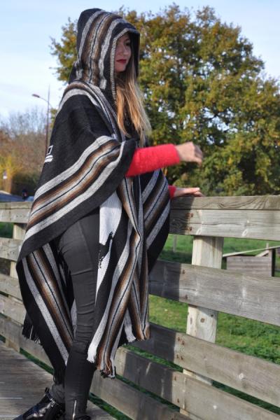 Poncho péruvien original en grande taille avec sa capuche.