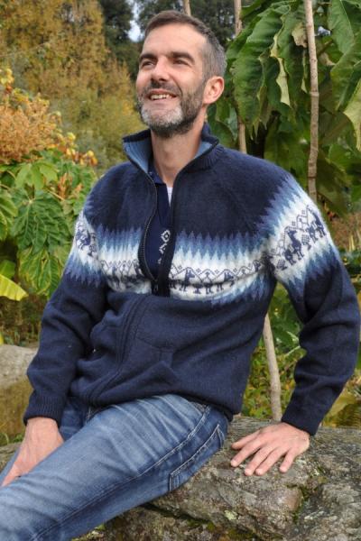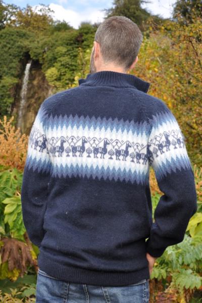 Sa couleur bleu marine des Andes met en valeur ses motifs originaux de lamas andins, pour un style authentique et unique.