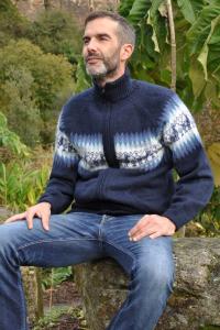 Veste artisanale tricotée en laine d’alpaga, douce, chaude et légère.