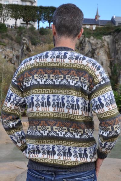 Offrez-vous l’authenticité des Andes avec ce magnifique pull jacquard pour homme.